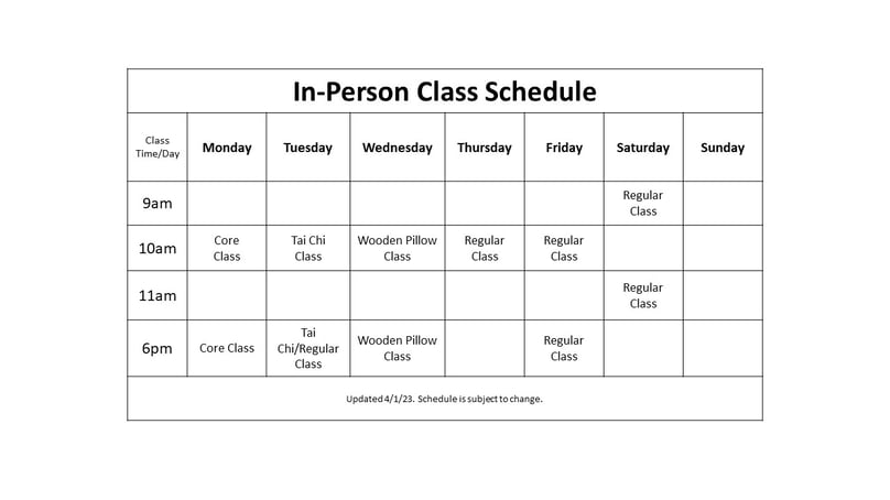 - 3 Classes per week: In-Person Classes are limited to 3 classes per week.